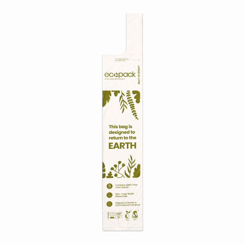 Ecopack 36L kitchen tidy liner is suited to large and extra-large bins. They are sustainable and eco-friendly being made from natural corn starch bio-resins and using water based eco-friendly inks for the printing. The bin liners are constructed with extra microns so they are strong and durable letting you store your organic waste without leaking. Afterwards, the compostable tidy liner degrades to carbon dioxide and water in moist conditions without leaving any harmful residues in the process.