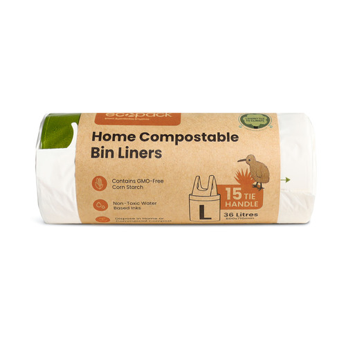 Ecopack 36L Large kitchen tidy liner with tie top. Biodegradable and compostable.